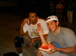 Paulo Negão e Daniel dentinho matando a fome (ou será a sede?) com melancia.
