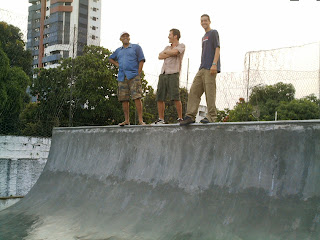 P. Negão, Rafael Magei e Tercilhinho Albano rindo sei lá do quê no extinto cangaceiro skate park.