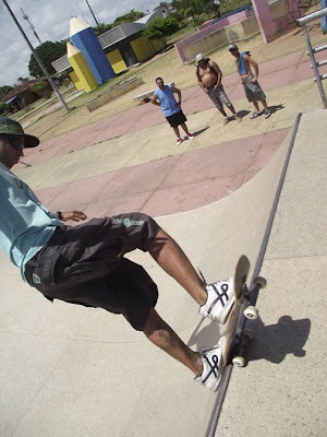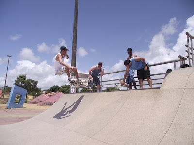 Depois de algum atraso de praxe, por volta das 9:00 horas estavamos na Mini Rampa do Bairro dos Bancários. Após a instalação da “indumentária”(Leia-se equipamentos) rolou uma boa session com Ossada mostrando que domina o pico com altos Ollies into Tail, Boardslides, FS Airs e por ai vai…